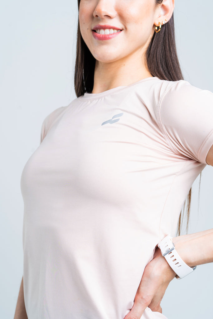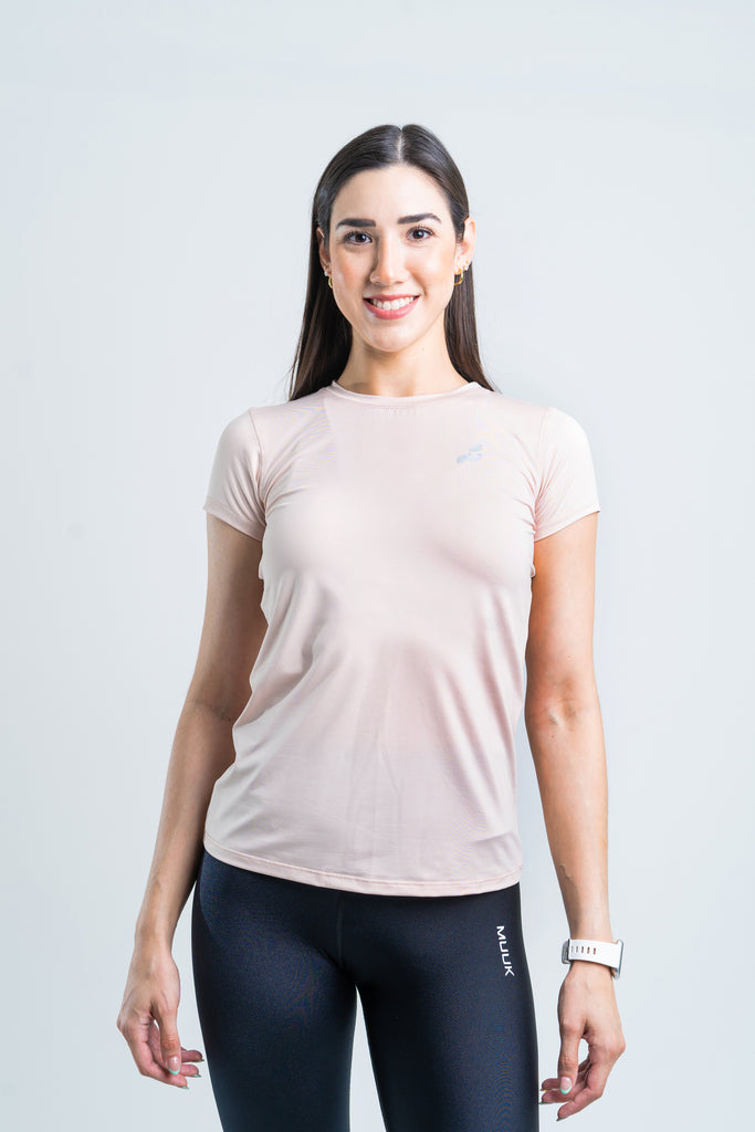Material ultraligero con un acabado suave y fresco. Diseñada para ser transpirable, confeccionada pensando en la comodidad, el tejido ofrece una excelente capacidad de estiramiento y recuperación, perfecto para el entrenamiento ligero y para uso casual fuera del gimnasio. Las camisetas SPIRIT ofrecen un ajuste relajado para una mayor comodidad y son la pieza ideal para combinar tus leggings favoritos MUUK.